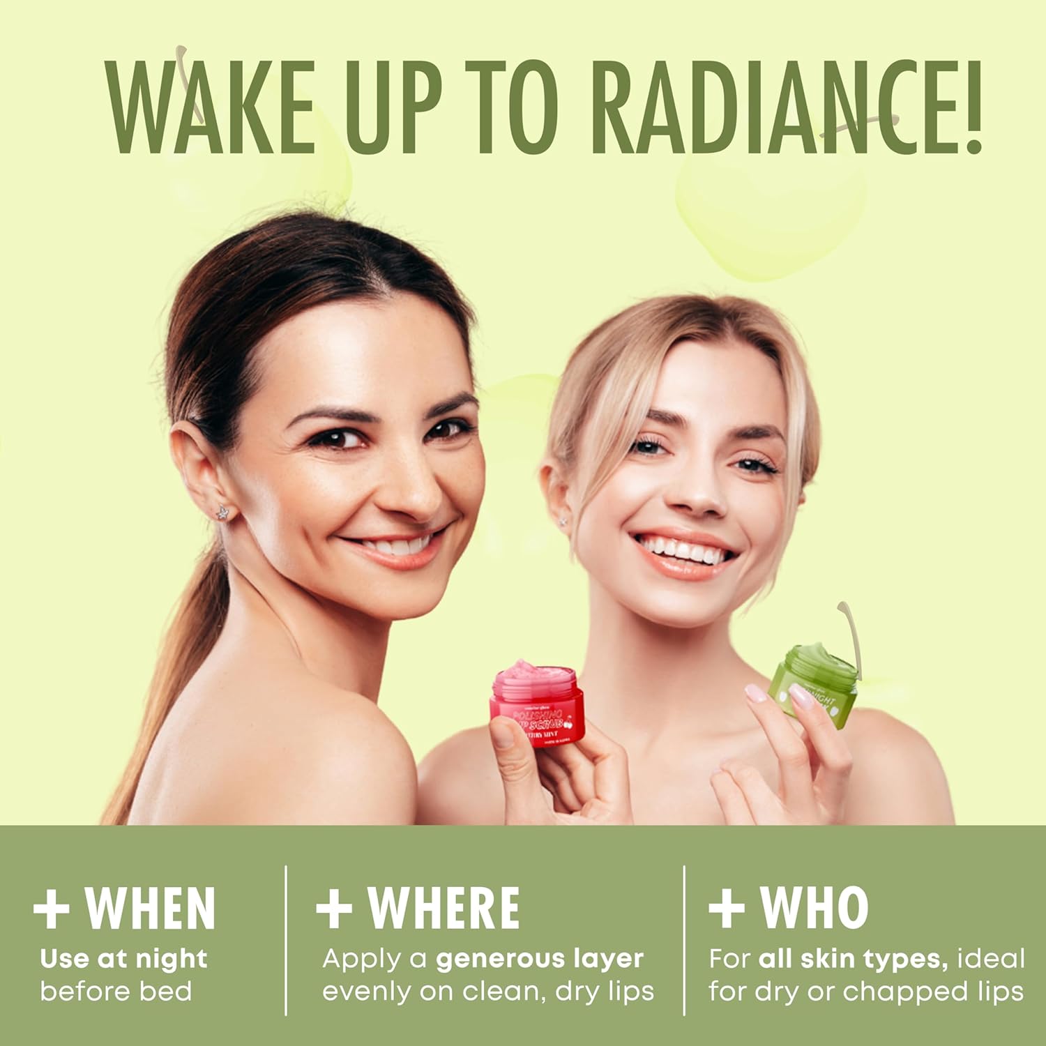 Apple, Pear, Cherry & Mint Lip Mask and Scrub - Dermatologist Tested, Hydrating & Exfoliating, Korean Skin Care, Nourishes, Softens & Brightens Lips - Vegan & Natural - 1 Pack