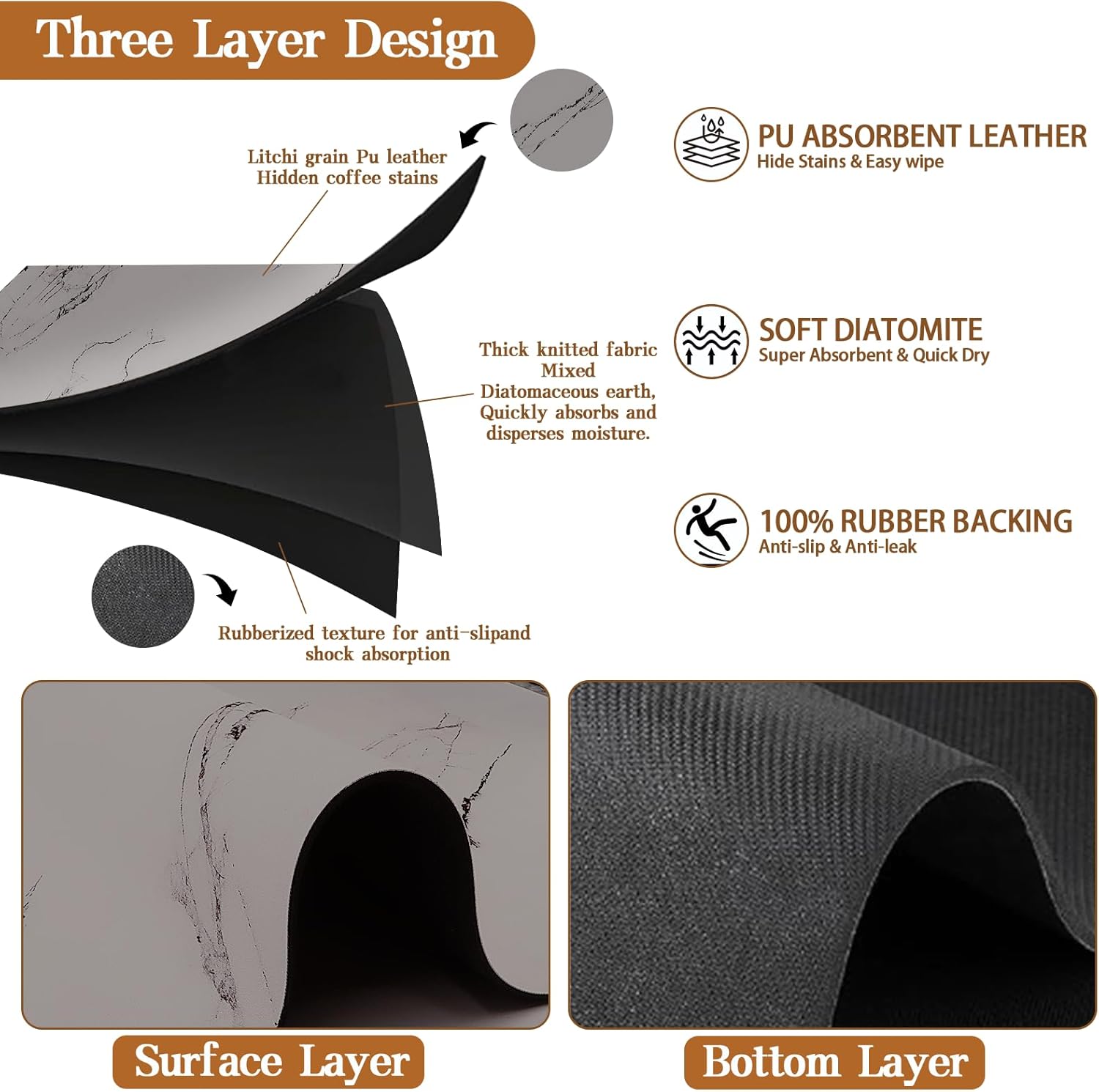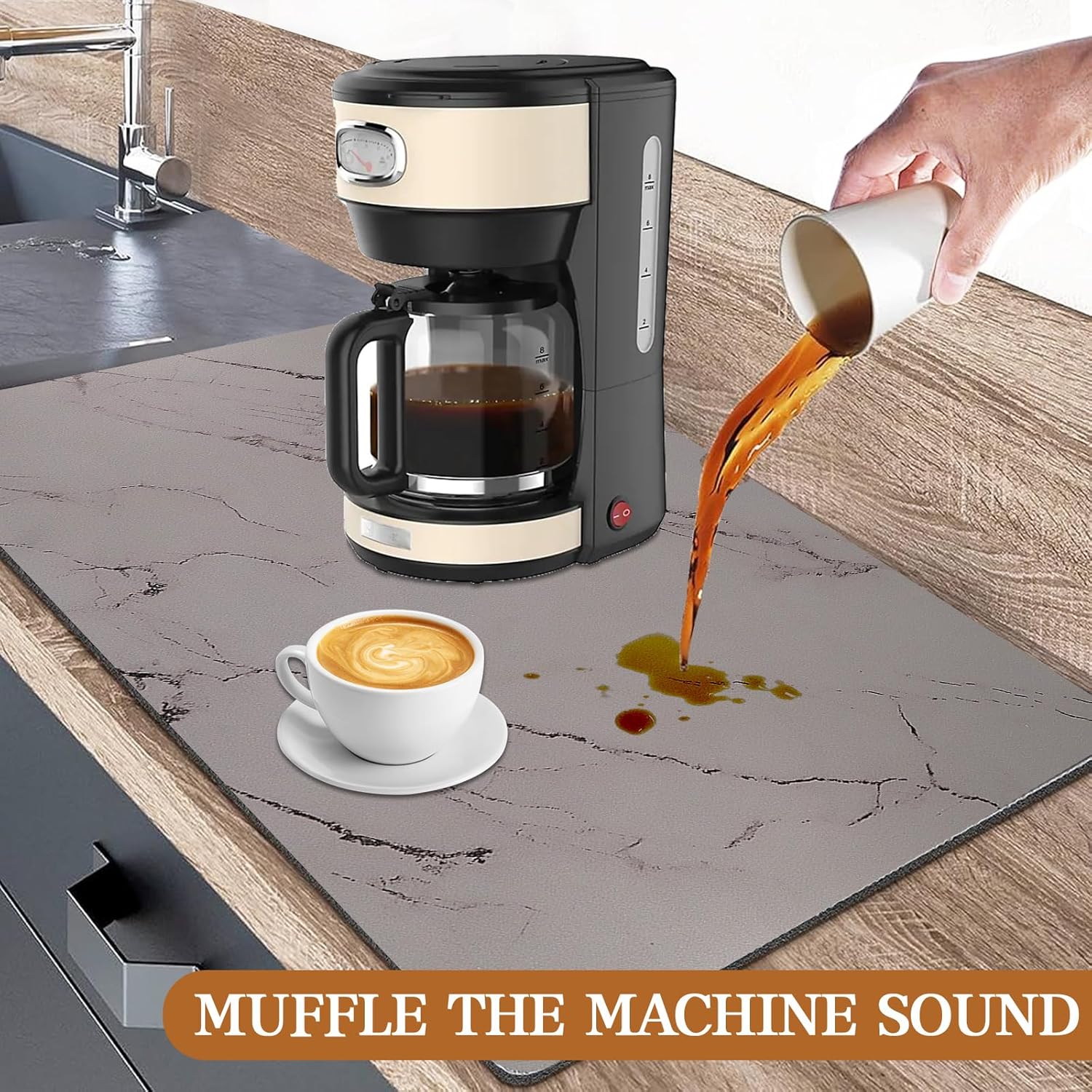 Dish Drying Mats for Kitchen Counter, 24"x16" Absorbent Coffee Bar Mat, Quick Dry Dish Rack Pad with Rubber Backed Non-Slip Marble Pattern Kitchen Counter Dish Draining Mat Easy to Clean (Gray)