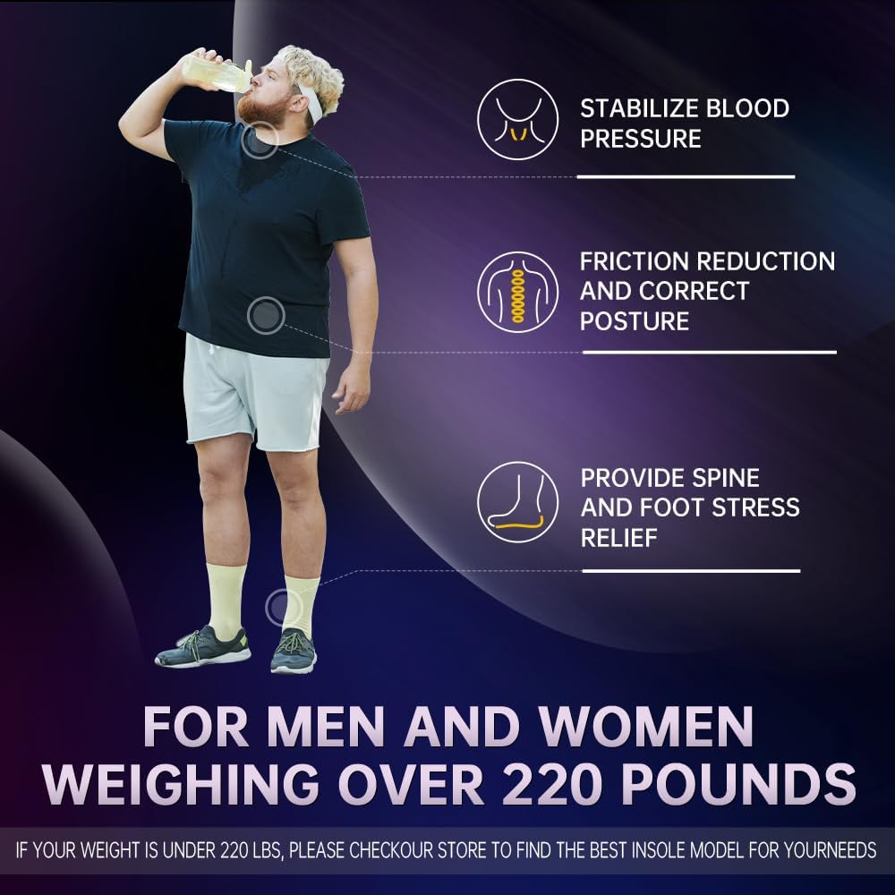- 【220 lbs+Heavy Duty Support Insoles】:Men's and women's orthopedic insoles, specially designed for heavier people, provide super high arch support and shock-absorbing technology to relieve foot and leg fatigue, distribute weight and reduce friction with every step impact, providing comprehensive foot support.