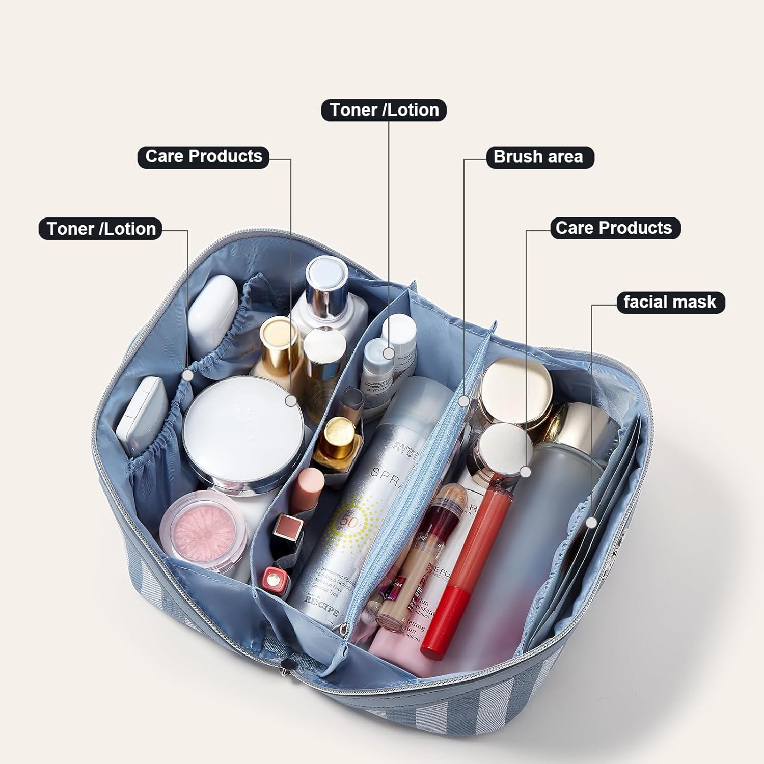 - Large Capacity Cosmetic Bag: This lightweight makeup organizer bag features a portable zipper opening. Measuring 9.25*5.1*5 inches, it fits 230ml toner bottles or larger. Weighing only 0.75 LB. Itβs ideal for holding cosmetics and toiletries. Use it as a travel toiletry bag, makeup organizer, bathroom bag, or cosmetic case.