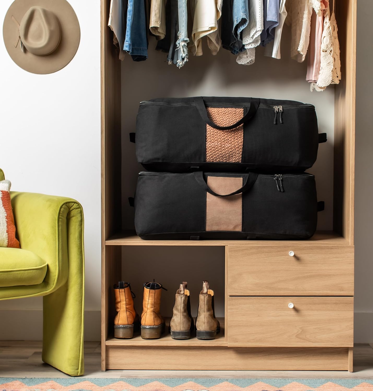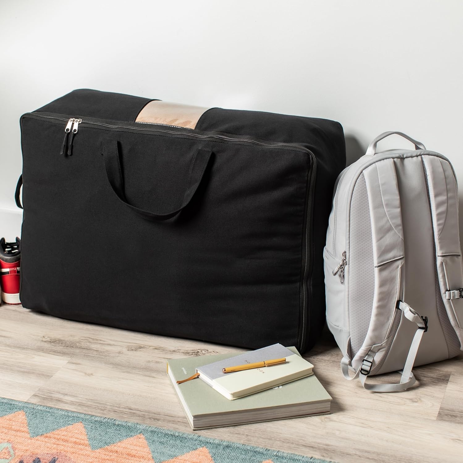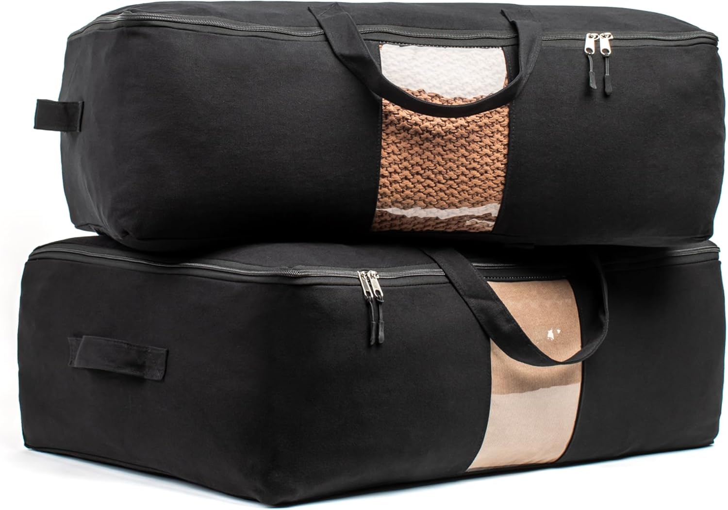 - COTTON CANVAS STORAGE WITH CLEAR WINDOW: You need to see which duvet storage or bed sheet storage is inside your case, right? So we added a scratch-resistant window to our beautiful black canvas storage bag. This big full-sized viewing pane lets you see all your seasonal storage at a glance.