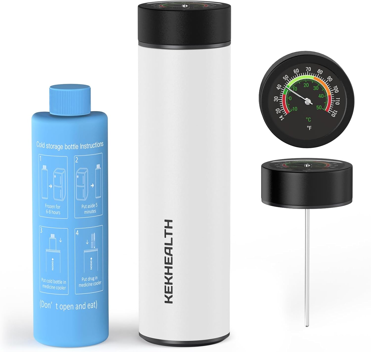 - 60-Hour Medical-Grade Protection: This insulin cooler uses 304 stainless steel and vacuum insulation to maintain critical 36-79°F temperatures for diabetes medications. The combination of a blue gel bottle (36-79°F/48H) and a white emergency bottle (36-79°F/12H) keeps medications at a safe temperature for up to 60 hours
