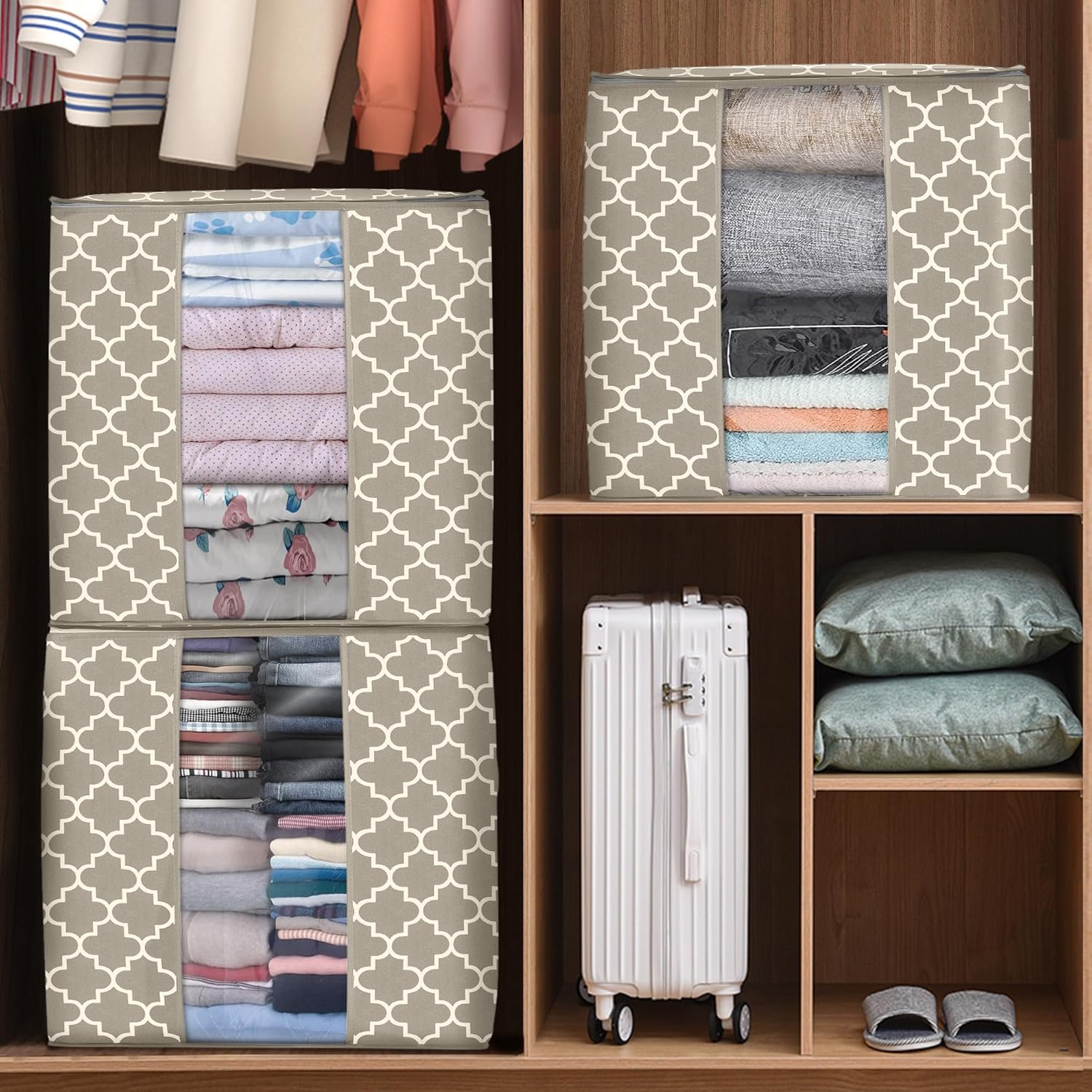 WISELIFE Storage Bags 4 Pack/100L Large Blanket Clothes Organization and Storage Containers for Comforters,Bedding, Foldable Organizer with Reinforced Handle, Clear Window, Sturdy Zippers,Beige