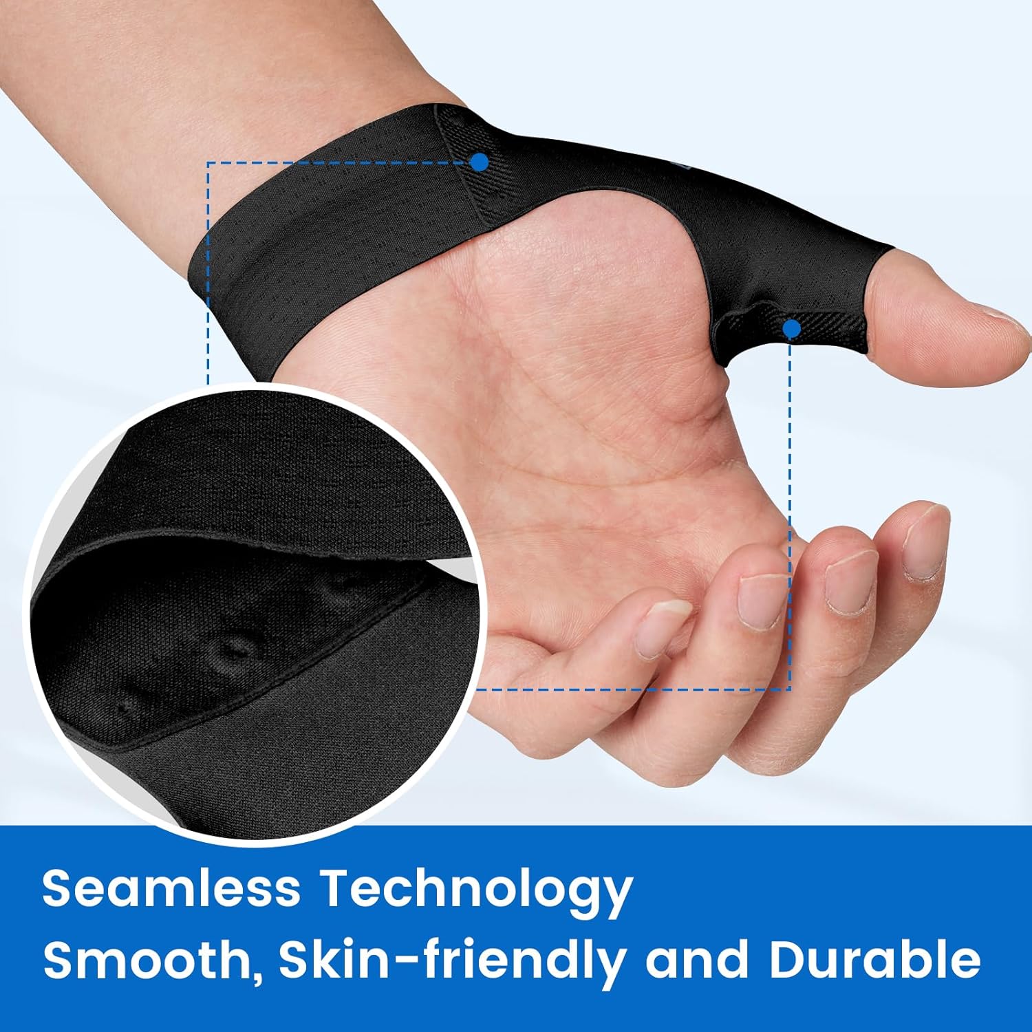 Velpeau Thumb Compression Sleeve for Tendonitis (Pack of 2), Seamless Technology, Gloves Wraps for Arthritis Pain Relief for Women & Men, Splint Liner, Fits Both Hands (Black,Short Version, S)