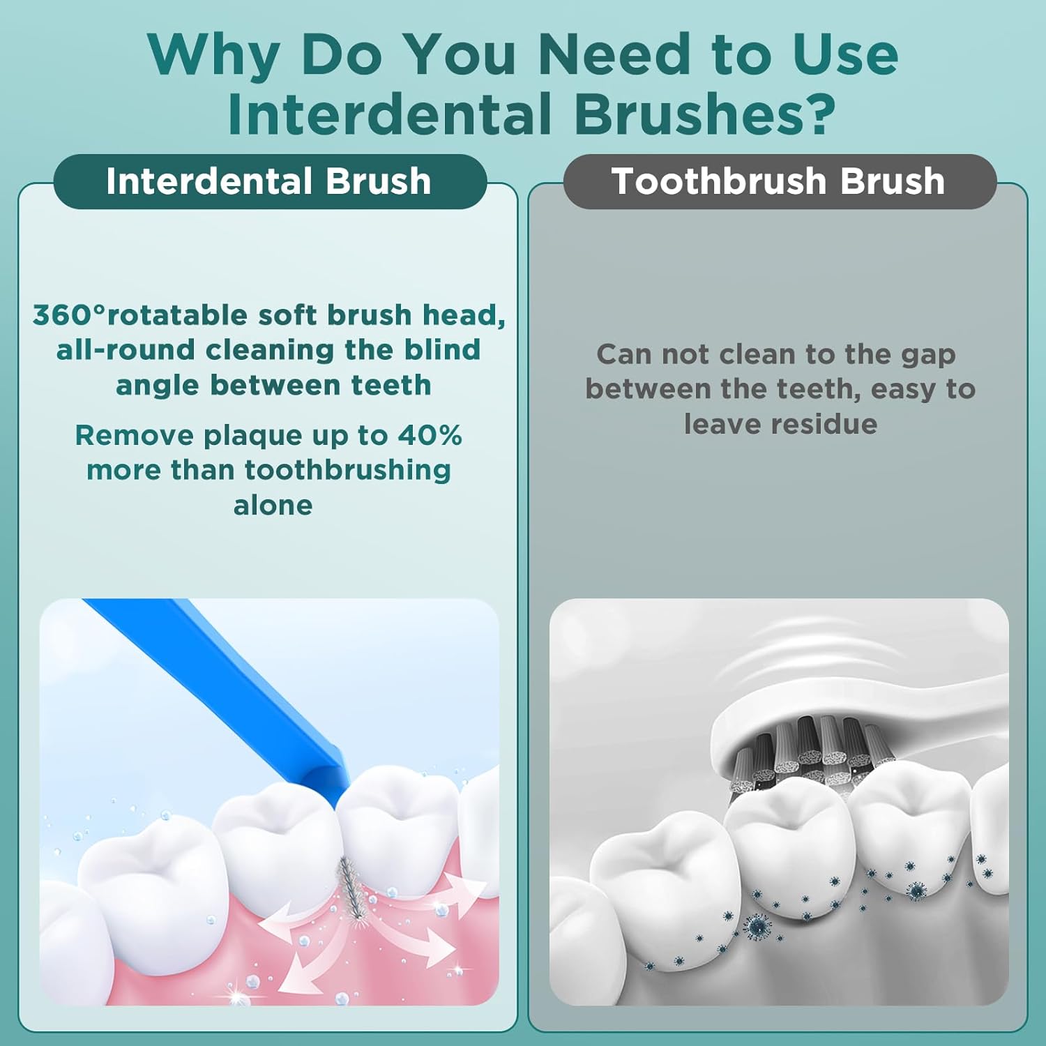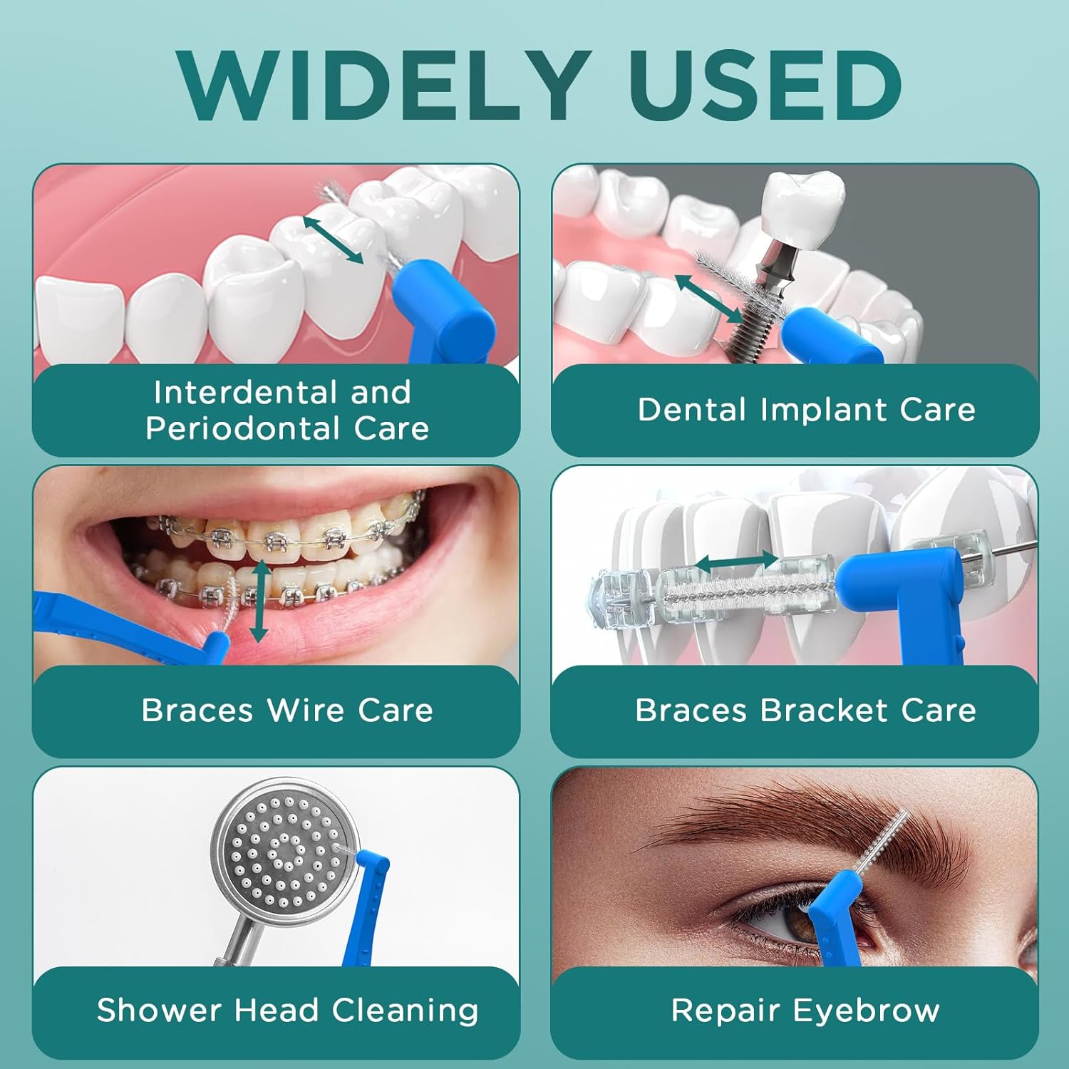 - VERSATILE TEETH BRUSH: Our interproximal dental brush is designed to effortlessly and comfortably remove tea stains, coffee stains, food residue, and dirt from teeth, leaving them cleaner and more visually appealing. In addition to its primary function of cleaning dental braces, it is also suitable for use on other surfaces such as eyebrows, shower heads, and keyboards.
