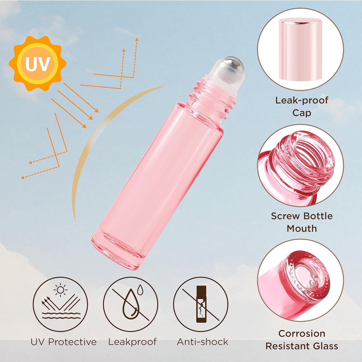 - Material: Crafted from corrosion-resistant glass, these thick, smooth, and shockproof bottles also block harmful UV rays to protect essential oils