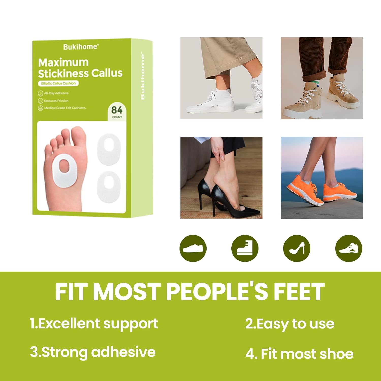 - Bulk Value Package: Includes 84 durable white callus pads, offering long-lasting supply for daily use, replacements, or sharing with family. Perfect for frequent travelers, athletes, or anyone needing reliable foot protection.