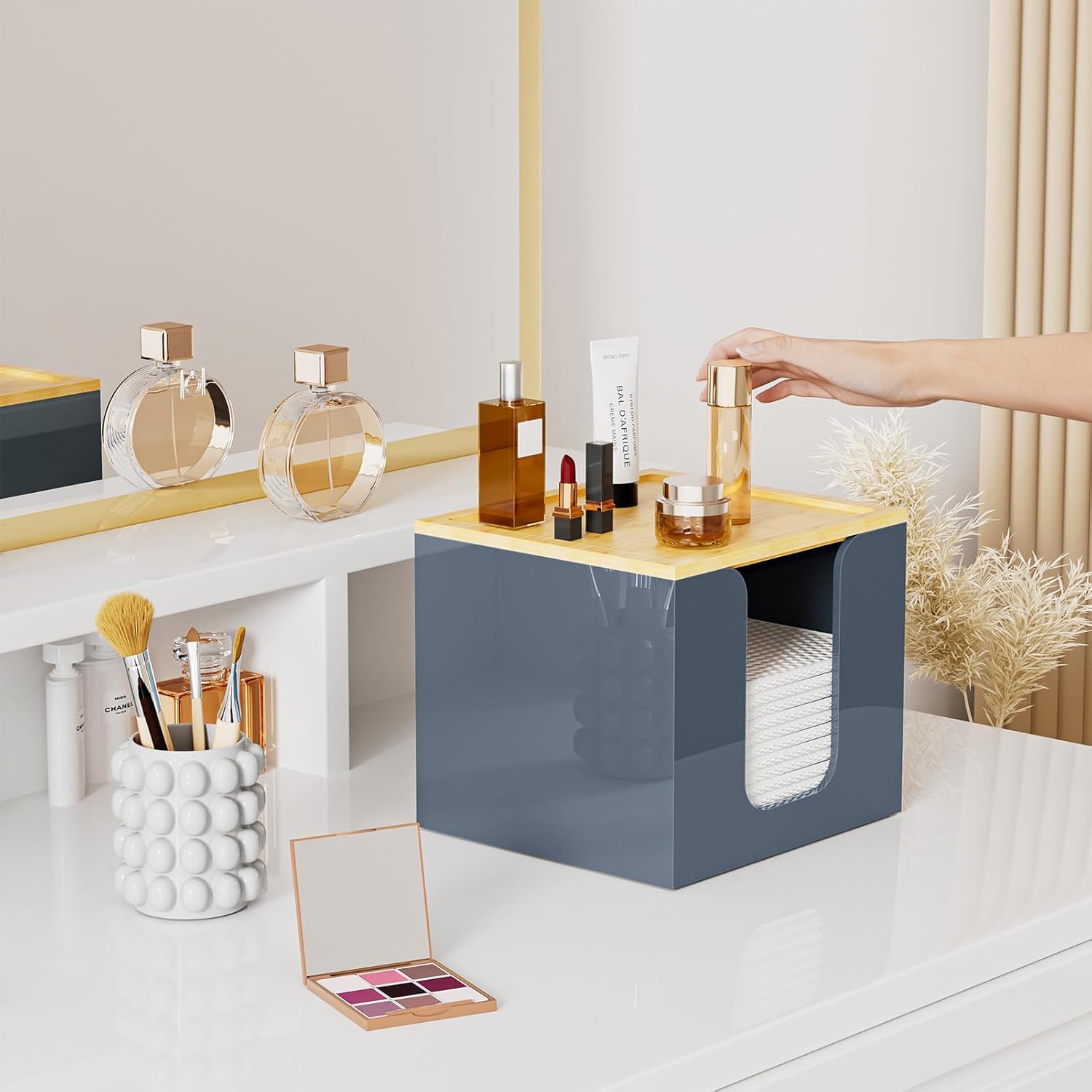 - 【Lid Storage Idea】This Face Towel Holder with ample storage space and a removable bamboo lid. The lid is great for holding makeup essentials and other small items.