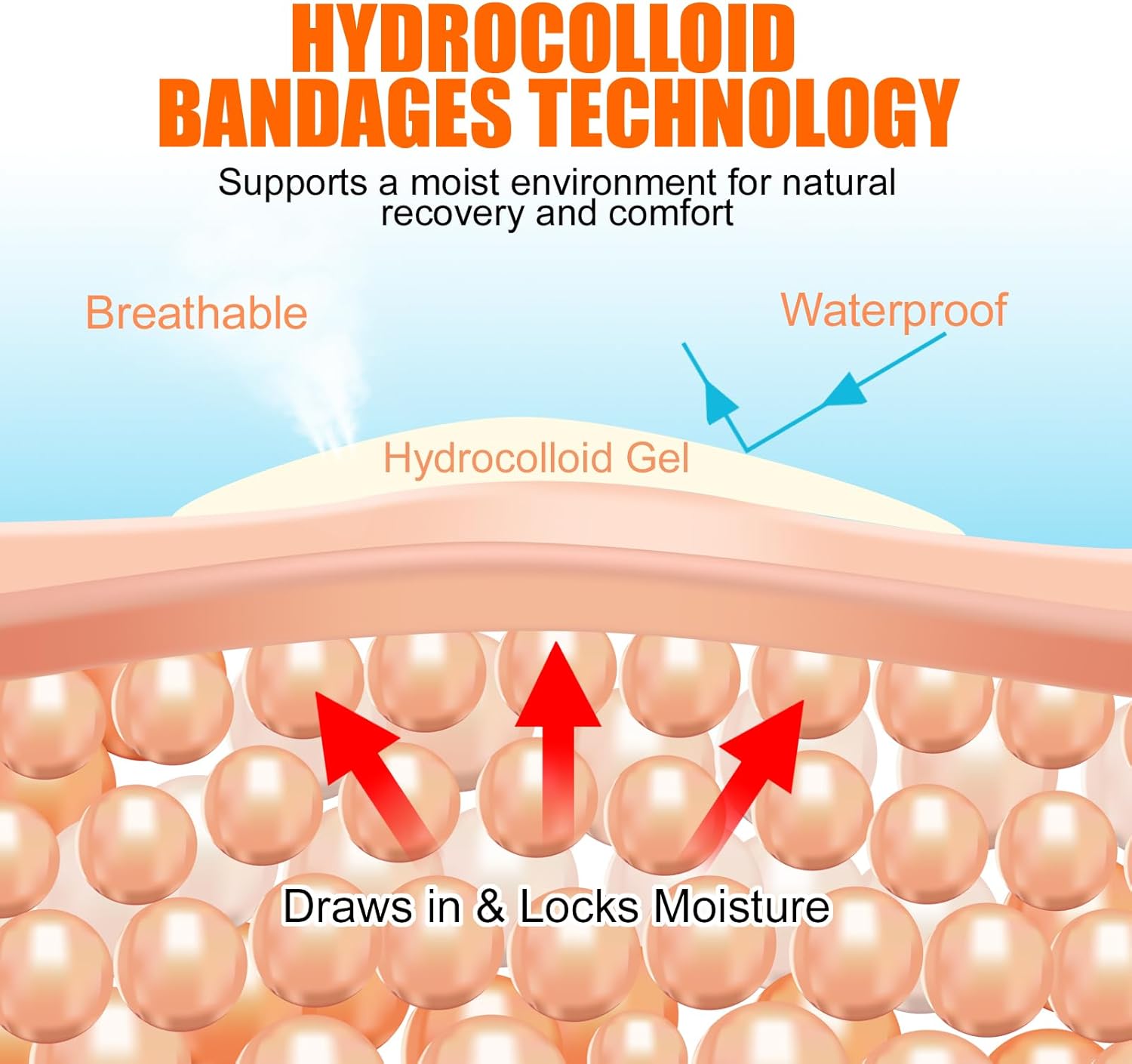 - Gel Protection & Absorption: Hydrocolloid gel bandages form a moist environment that supports faster recovery. Shields skin from friction, water, and dirt.