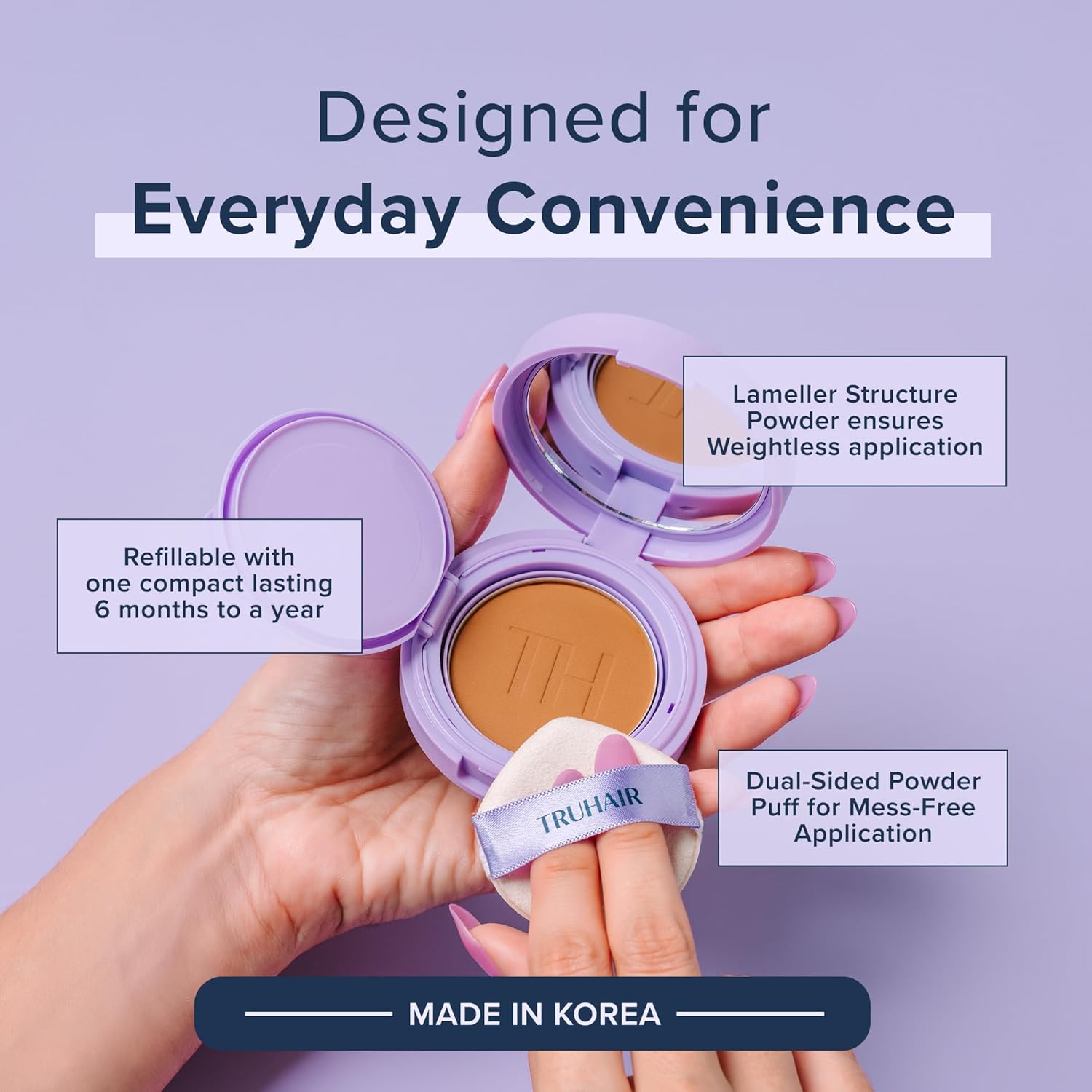 TRUHAIR Root & Scalp Cover Up Pressed Powder Compact, Waterproof, Weightless Hair Coverage & Bald Spot Concealing, Root Touch Up Hair Color for Gray Coverage & Thinning Areas, 0.35 Oz (Medium Brown)