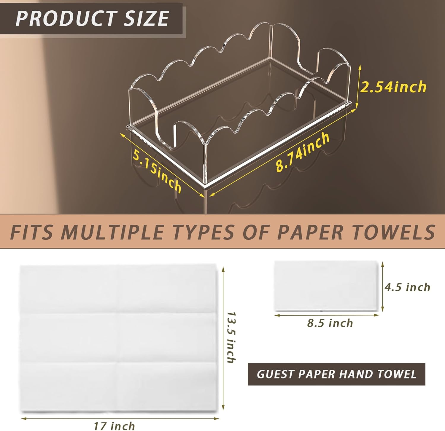 Napkin Holder for Table, Scalloped Acrylic Guest Towel Holder for Bathroom, Clear Waterproof Disposable Paper Hand Towels Lucite Tray for Kitchen Buffet Napkin Caddy for Home Restaurant Party