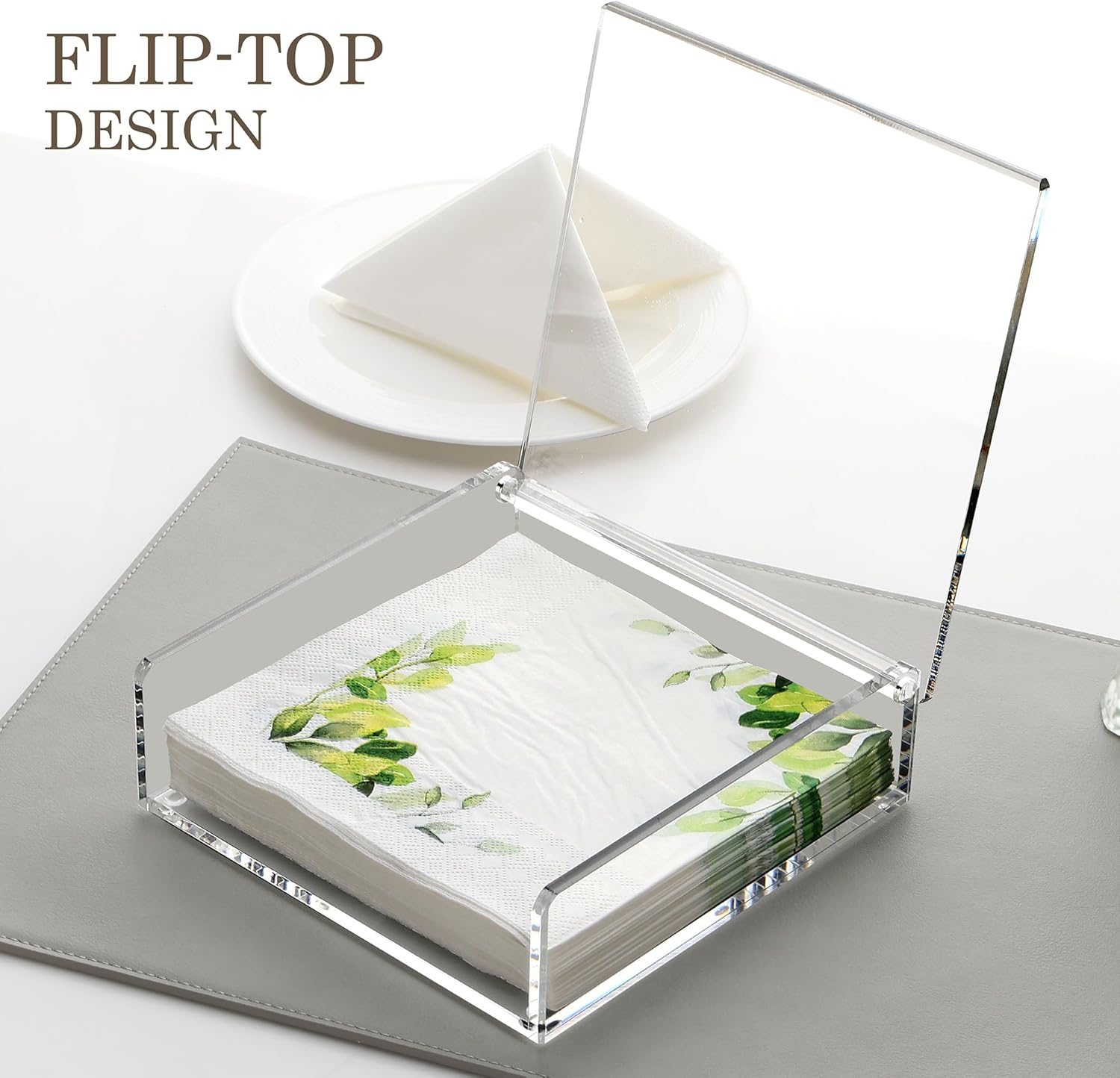 - 【Durable Acrylic Construction】Made from high-quality clear acrylic, this napkin holders for paper napkins is stronger and safer than glass, with a sleek look that complements any decor.