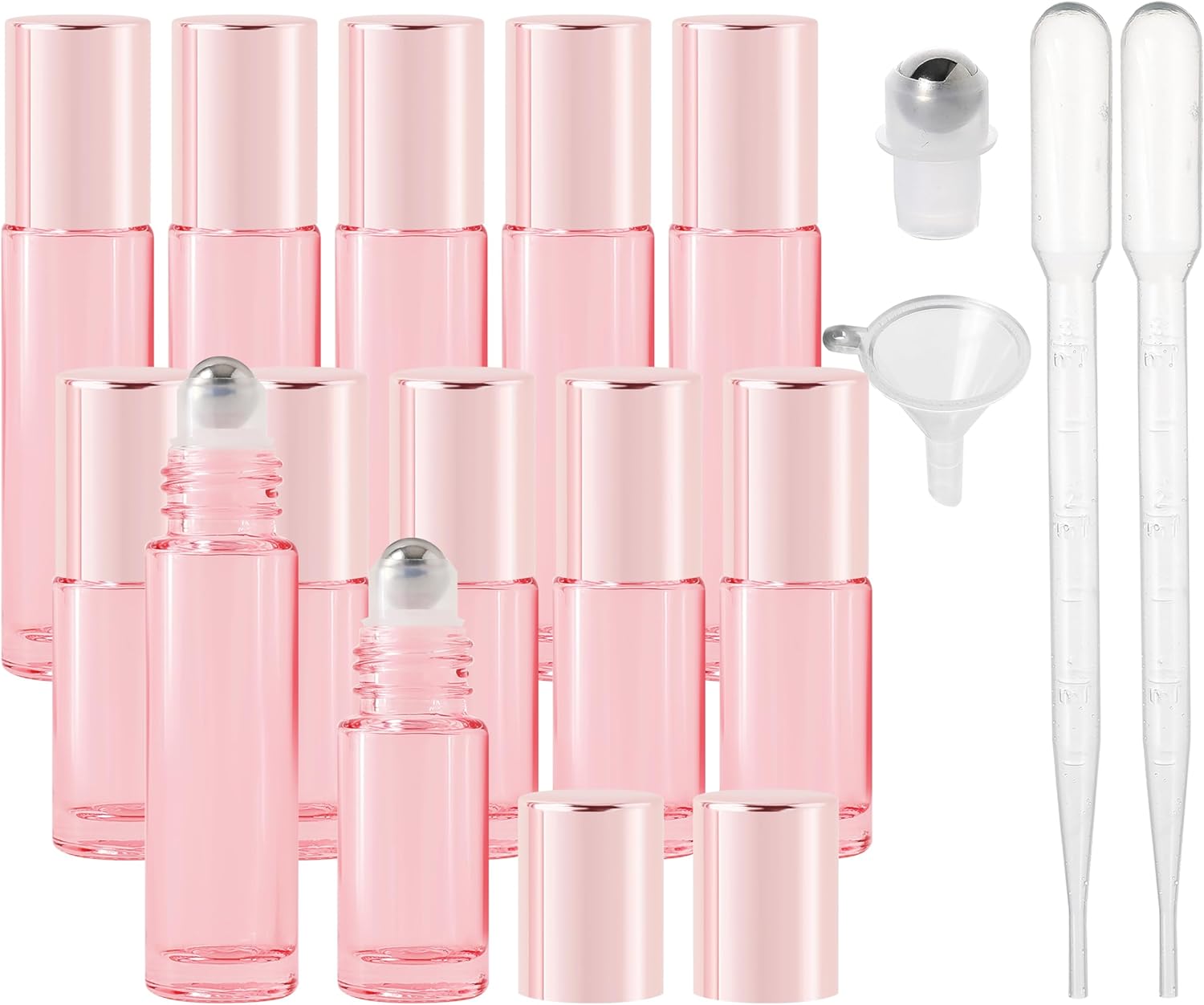Essential Oil Roller Bottles, 12PCS (10ml & 5ml) Glass Perfume Roller Bottles with Funnel Opener and Dropper Beauty and Personal Care Tools
