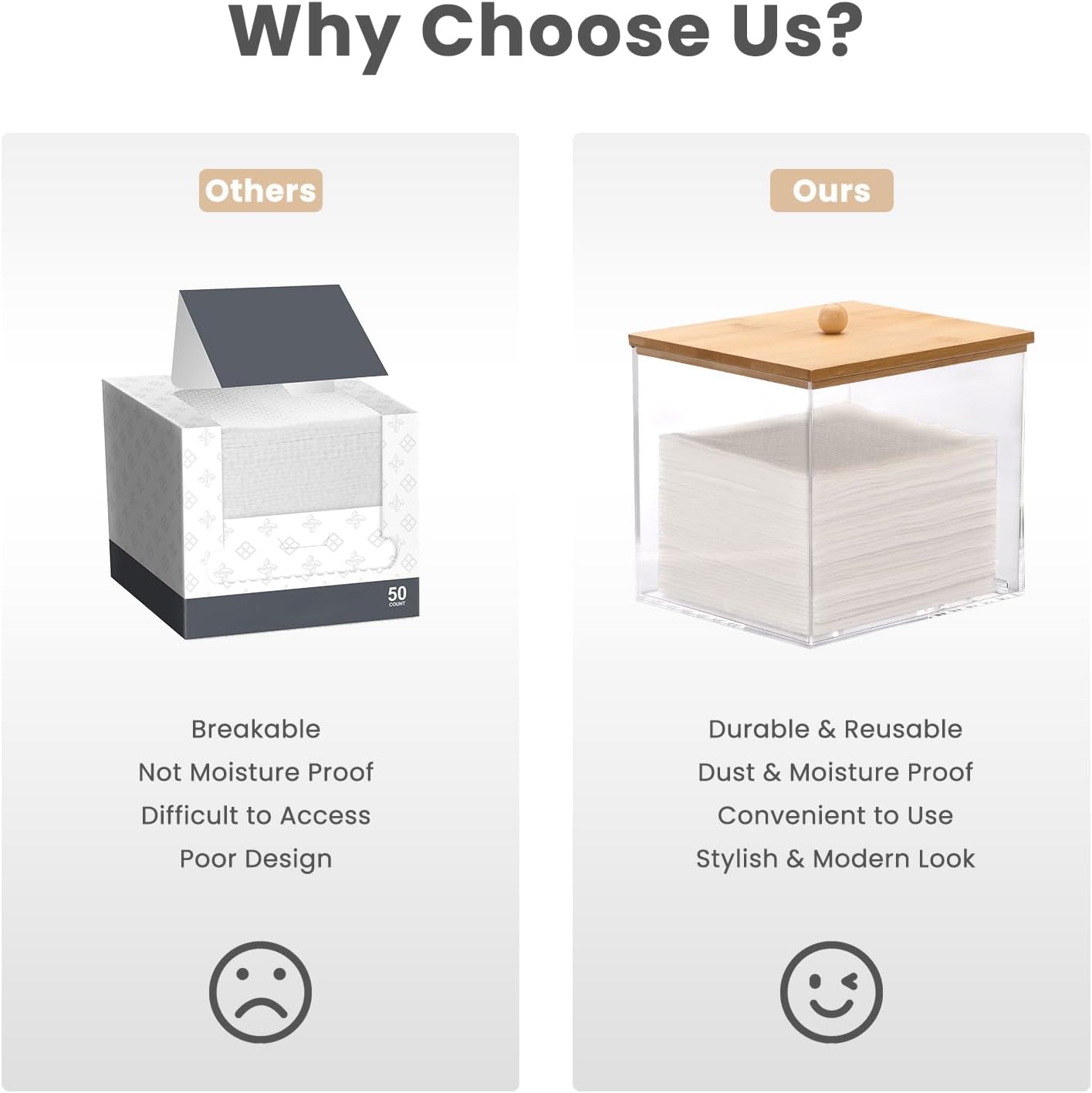 - Clean & Visible Storage – Transparent acrylic box with a wooden lid keeps face towels dry, dust-free, and easy to monitor at a glance