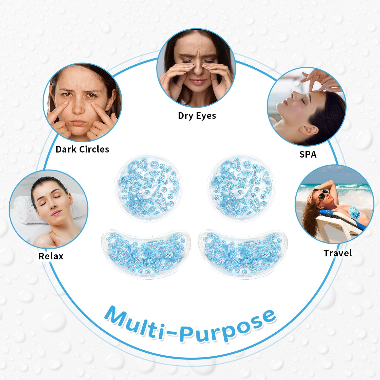 4PCS Gel Eye Ice Pack Set, Cold & Hot Compress, Reusable Cooling Gel Pads for Strain Relief, Relaxation, SPA and Sleep (4 Blue Flowers-2)