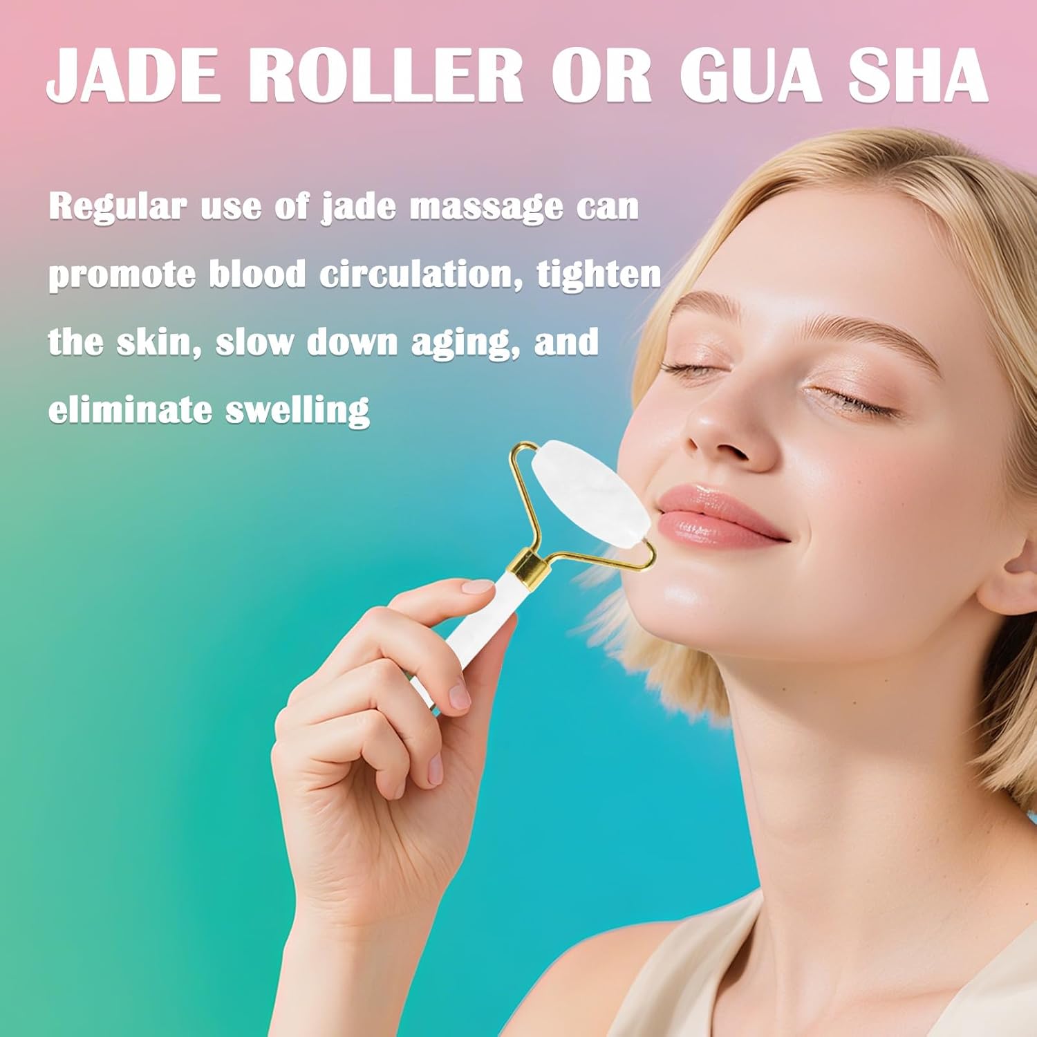 Jade Roller Gua Sha Tools - Nature Gua Sha Facial Tool Skin Tightening Face Massager Anti-Aging Jade Face Roller Puffiness Reducing Guasha Stone for Women Men (White)