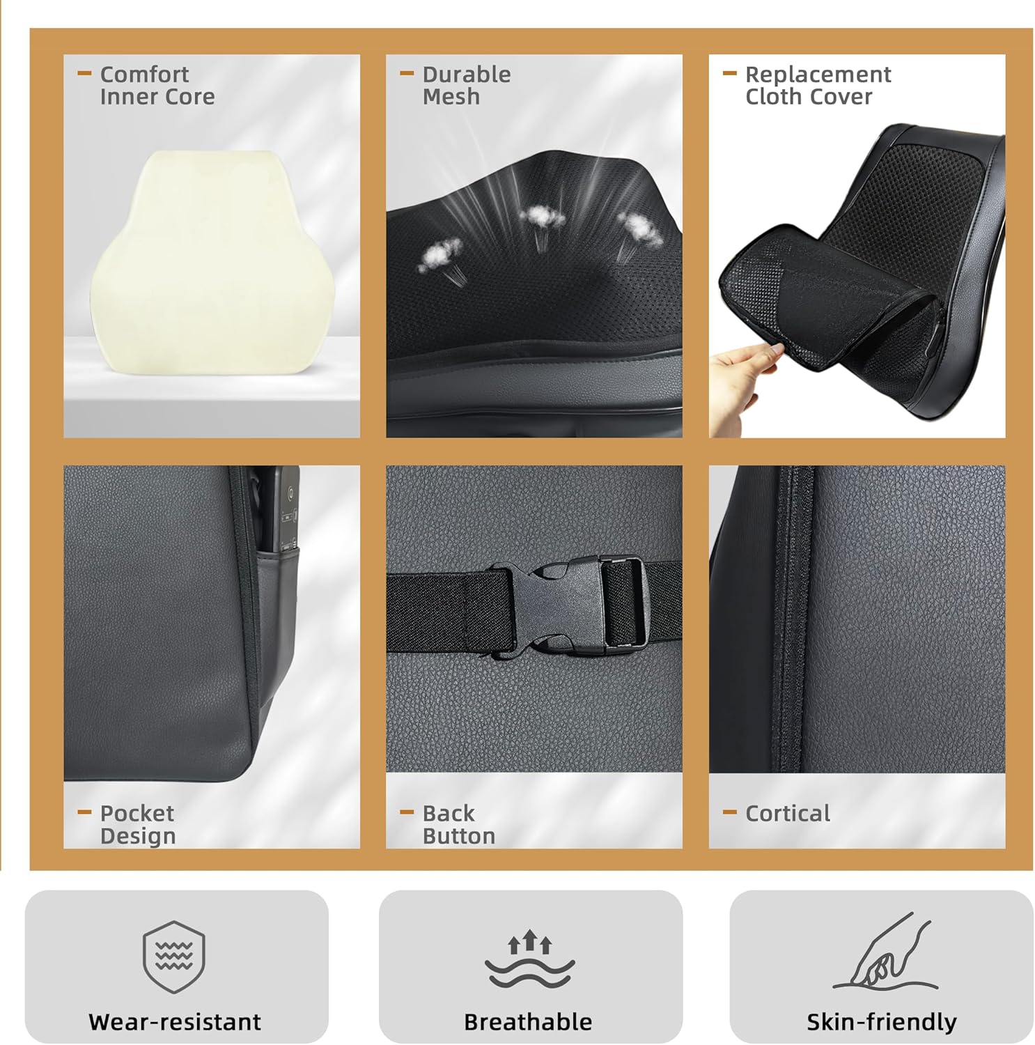 - Portable and Convenient:Neck massager is lightweight and portable, perfect for office and outings.The shiatsu back deep tissue massager has elastic band fits into a variety of chairs and Settings, such as sofas, office chairs, car seats, recliners, and more.Our massage pillow also has ergonomic design,suitable for various body contours,such as arms, waist, shoulder, legs, and more.Providing a comprehensive and effective massage experience