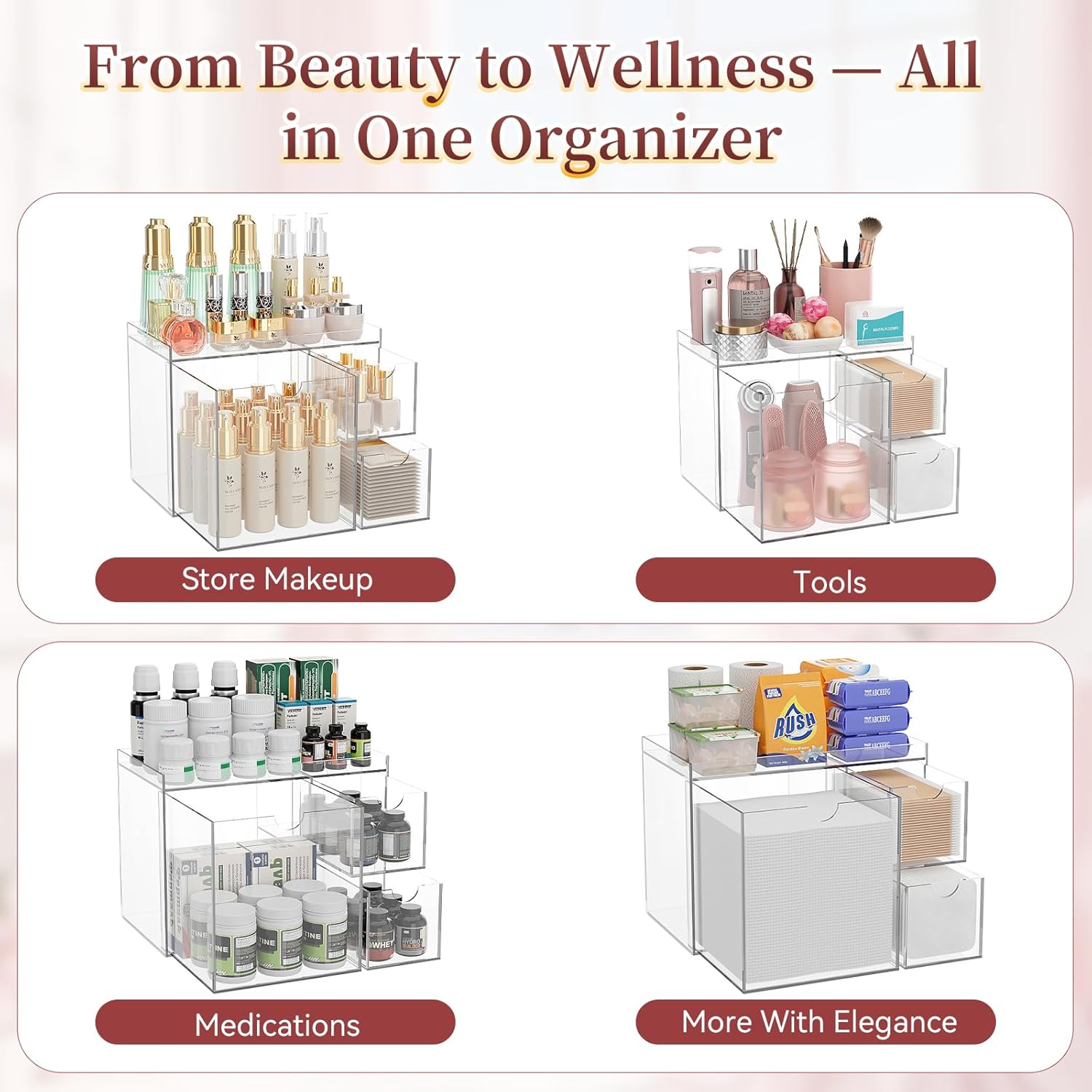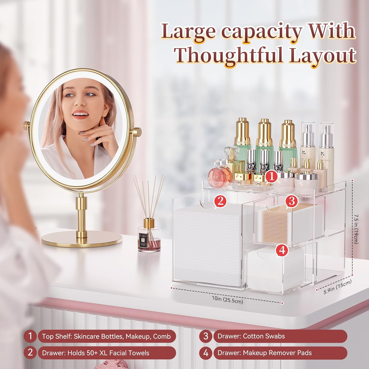 Youdepot Acrylic Face Towel Holder – Disposable Face Towel Holder with Drawers – Clear Skin Club Box for Vanity & Bathroom Storage